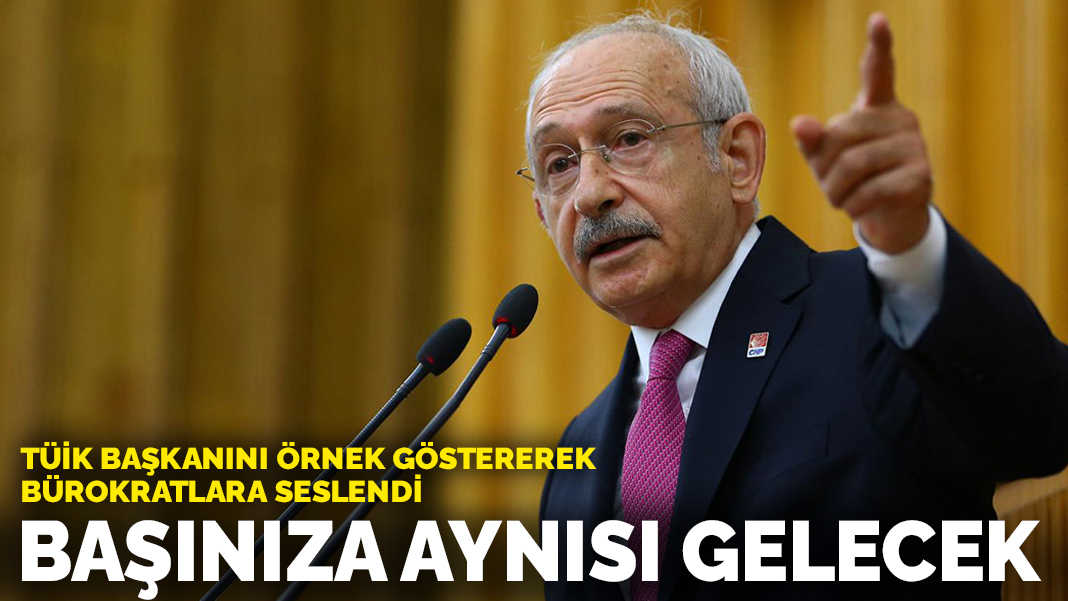 Kılıçdaroğlu, bürokratlara seslenerek, "Şahıs ve ailesi, TÜİK bürokratını anında çöpe attı. Bunların suçlarına ortak olan bürokratlar, geç olmadan bu yoldan dönün. Başınıza aynısı gelecek. Suçlar sırtınızda yeni iktidara merhaba diyeceksiniz!" ifadelerini kullandı.