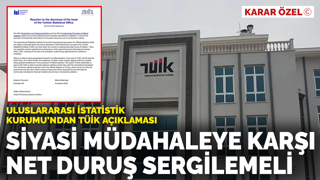 "TÜİK'in çalışmalarında profesyonelliğin ihlal edildiğine dair hiçbir kanıt sunulmamakla birlikte, ISI ve IAOS, diğer benzer durumlarda olduğu gibi, resmi istatistiklerin üretilmesinde siyasi müdahale olarak gördüğümüz şeye karşı net bir duruş sergilemelidir. Türk makamlarının, TÜİK'in uluslararası standartları tam olarak karşılayan nesnel istatistikler sağlayabileceğine dair güvence vermesini bekliyoruz. Bu, yalnızca hükümete değil, genel olarak Türk toplumuna da hizmet eden ve güvenilir istatistiklere dayanan mali piyasalar da dahil olmak üzere uluslararası toplum tarafından saygı duyulan Türkiye'nin resmi istatistiklerine olan güveni sağlamanın aracı olacaktır."