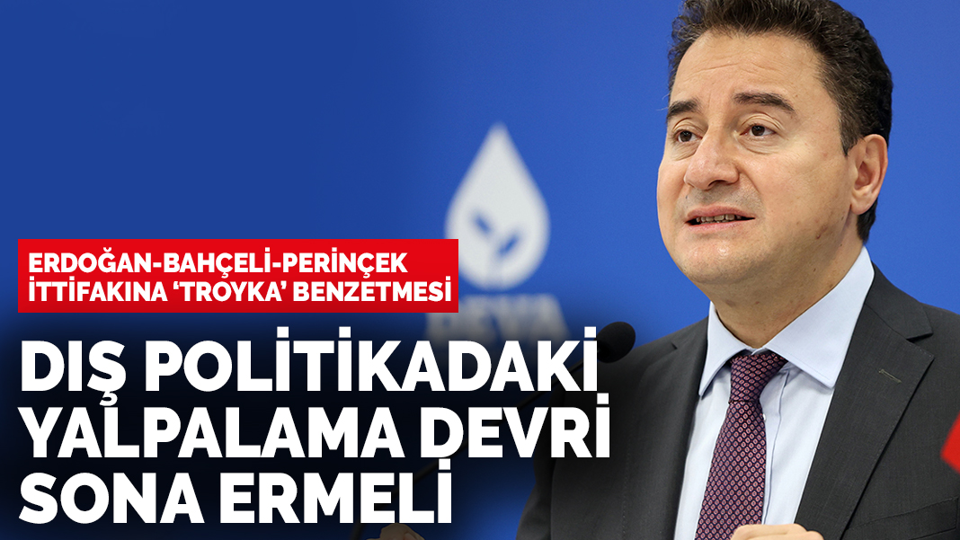 Dış politika konusunda iktidara eleştiriler yönelten Babacan, ''Dış politikada bugüne kadar yaptığı hatalarla ciddi bir eksen sorununa yol açan Erdoğan-Bahçeli-Perinçek troykasının dış politikadaki yalpalama devri artık sona ermelidir.'' dedi.